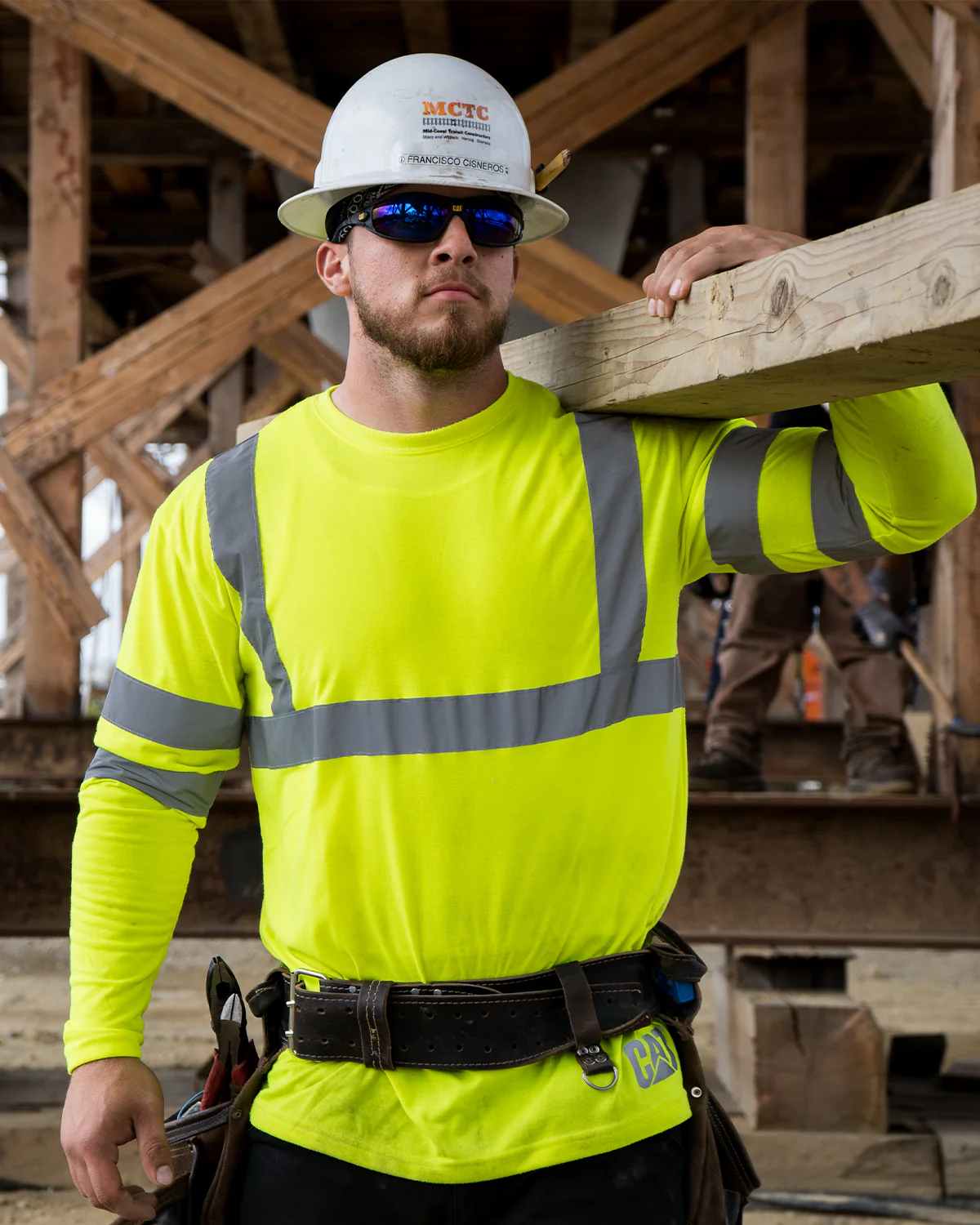 Meet the highest visibility standards without compromising comfort in this Class 3 certified hi-vis long-sleeve tee. Built to EN ISO 20471 Class 3 specifications, the 2-inch reflective taping wraps around front, back, and sleeves to ensure 360-degree visibility in low-light conditions. A reflective logo at the left hem adds another safety element to this certified design.